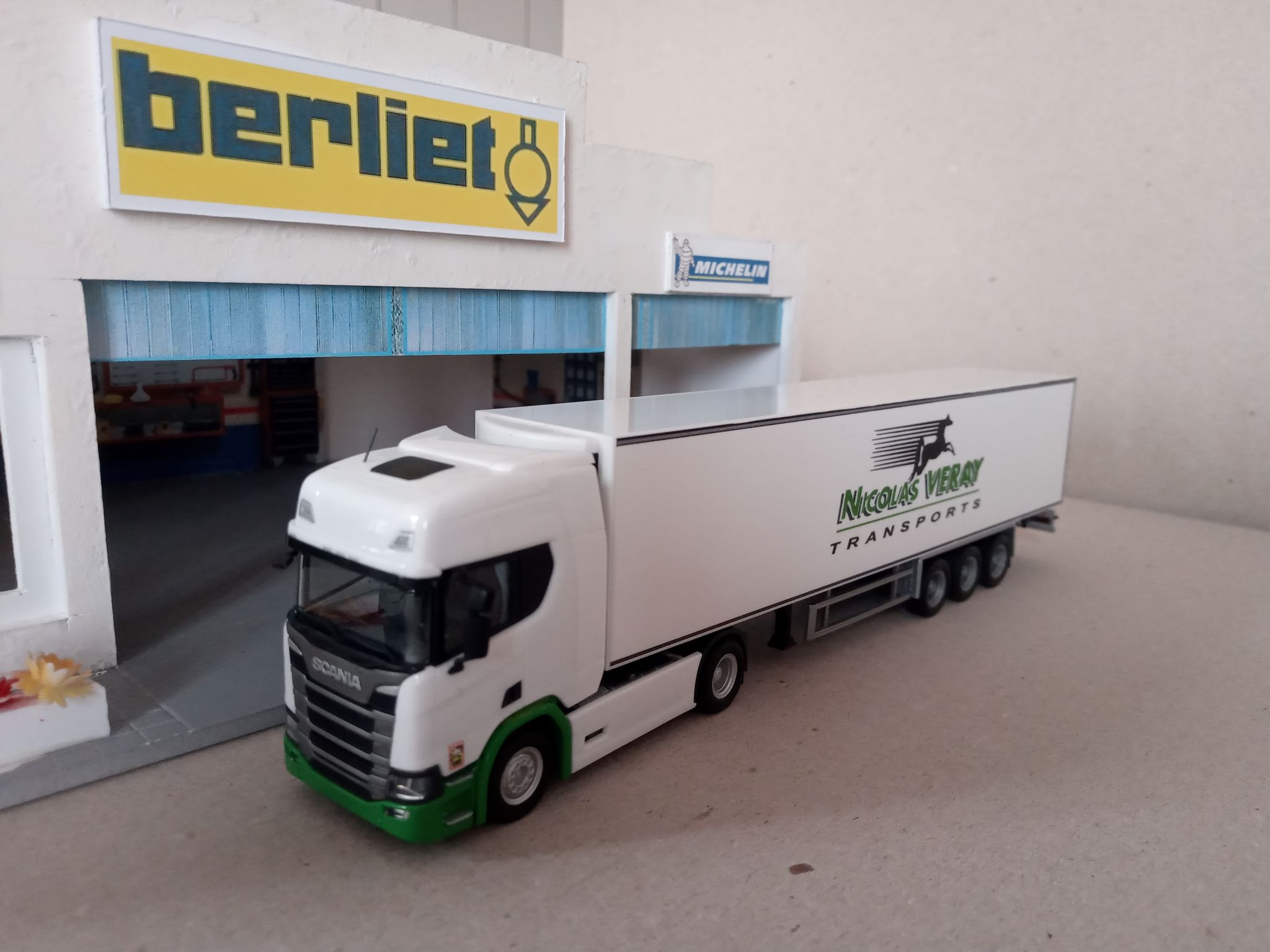Toujours aussi jolie tes ensembles Philippe bravo le groupe de froid sur la cabine et super beau fait maison je suppose magnifique camion remorque :panneau17-1b1f: